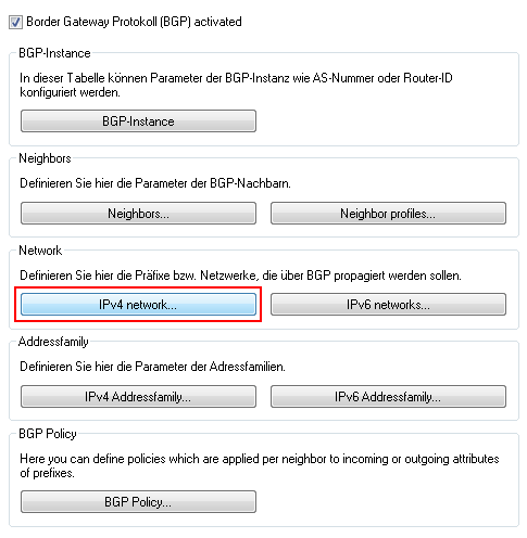 | Checkbox Active | Enable the BGP instance of the router. This is necessary to enable communication between the two routers. |