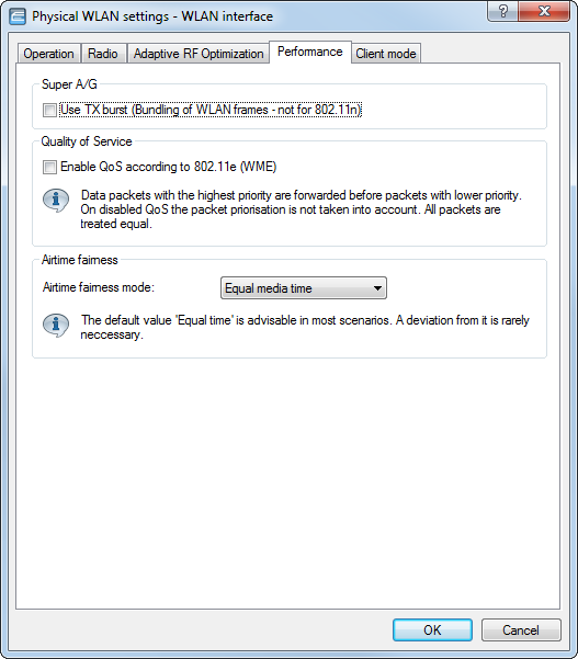 - Configure the settings of airtime fairness here. For further information, please see Airtime Fairness:
