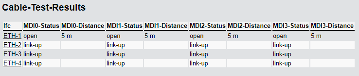 This is done by navigating to . The list displays the results produced by the cable test for each interface.