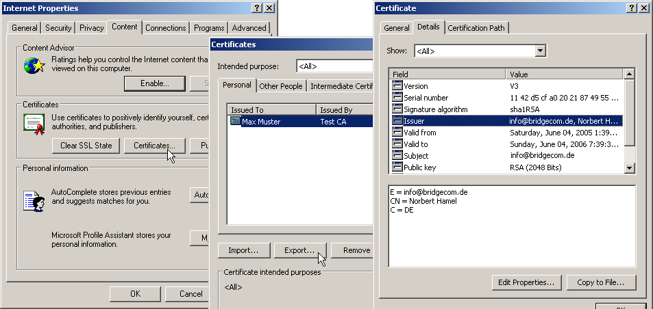 - The identities are entered exactly as they stand in the certificates. The individual values such as 'CN', 'O' or 'OU' can be separated by commas or slashes.