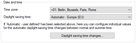 The device works internally with the coordinated universal time (UTC). For protocol displays and time-related settings (e.g. cron jobs), the local time is taken as calculated from the defined time zone. To take local daylight-saving time into account, settings can be configured according to requirements.
