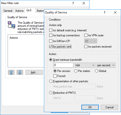 The sense of the direction of data transmission is set in LANconfig when defining the QoS rule: