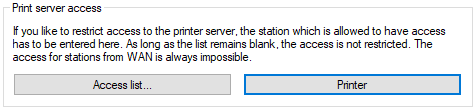 In LANconfig you configure the printer server under in the section Printer server access.
