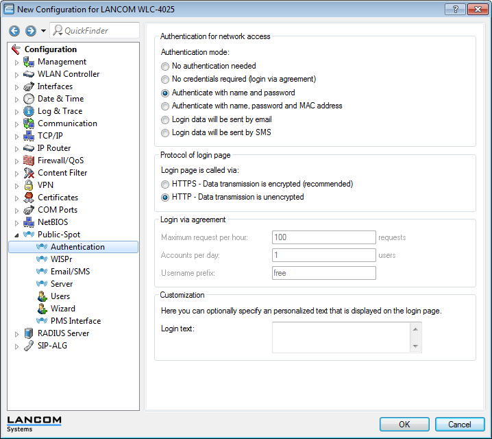 The Public Spot allows you to provide a strictly controlled point of access to your wireless LAN. Authentication is performed by requesting user information via a web interface. If necessary, you can can set a time limit for the access.
