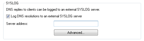 - This option enables or disables (default setting) the sending of SYSLOG messages in the case of DNS requests.