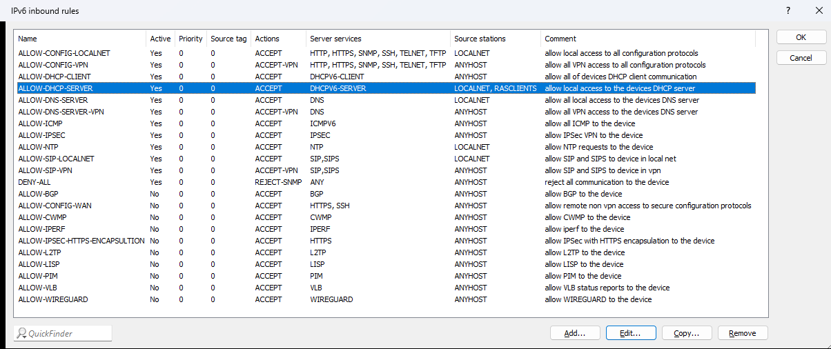 Check in the IPv6 inbound rules that "Allow-DHCP-Server" is allowed from the source stations "RASCLIENTS".
