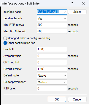 "RAS-TEMPLATE" you just activated, and for Default router select "Always".