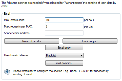 The settings for transmitting the login credentials to the e-mail address specified by the user are adjusted in the dialog . The following steps show you how to correctly configure e-mail authentication.