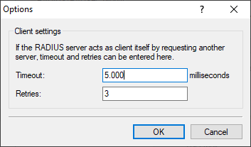 - These values indicate after how many milliseconds a RADIUS authentication should be repeated and how many attempts are made before it is rejected.