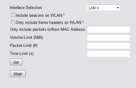 The data packets on the selected interface are now captured. Click the Stop! button to halt the data capture.
