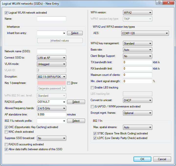 - The WLAN interface supports PMF. The WLAN management frames are always encrypted. It is not possible to connect with WLAN clients that do not support PMF.
