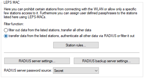 When using a RADIUS server for the authentication of WLAN clients, the RADIUS server uses the MAC address to check client authorizations.