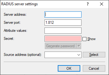 - Enter the IP address (IPv4, IPv6) or the hostname of the RADIUS server used for central user management.