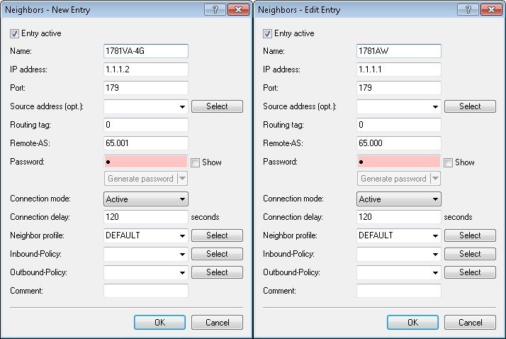 | Entry active | Activate the entry for the corresponding neighbor. |