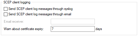 - E‑mail address to receive the log message.Note: To make an entry, you first have to activate the option Send SCEP client log messages through email.