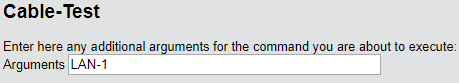 The cable test allows you to test the cabling from the device. This is done in WEBconfig by navigating to . Enter the name of the interface that you want to test (e.g. “DSL1” or “LAN-1”). Make sure you spell the name of the interface correctly. Start the cable test for the specified interface by clicking on the Execute button.