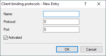 Under Client binding protocols you configure the corresponding protocol/port combinations.