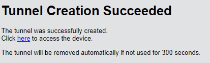 The dialog that follows displays a confirmation of the newly created tunnel and provides a link to the device.