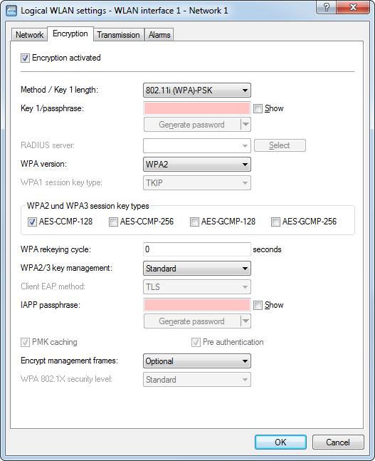 - The WLAN interface supports PMF. The WLAN management frames are always encrypted. It is not possible to connect with WLAN clients that do not support PMF.