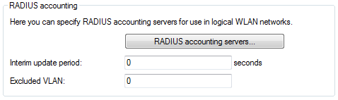 - Here you enter the ID of the VLAN that the device is to exclude from RADIUS accounting. The RADIUS server then receives no information about the traffic in that VLAN.