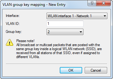 If you want to use different VLAN IDs on a single logical wireless LAN network (SSID), you have the option to assign the appropriate group key for broadcast and multicast transmissions. This setting in LANconfig is found under