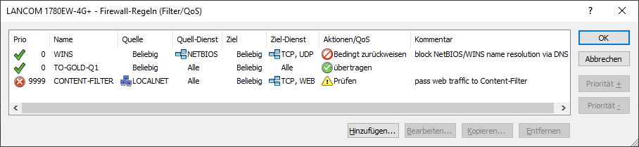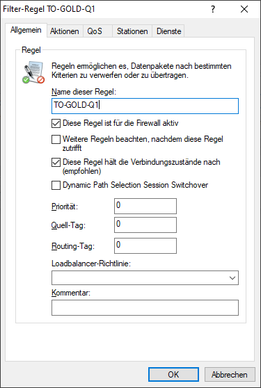 - Als Ergebnis erhalten Sie eine Regel, welche die gewünschten Pakete einer Queue – in diesem Beispiel "GOLD"