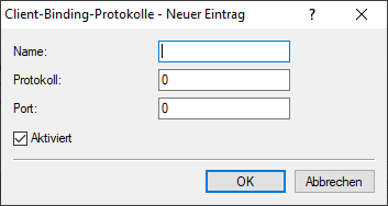 Unter Client-Binding-Protokolle konfigurieren Sie die entsprechenden Protokoll- / Port-Kombinationen.