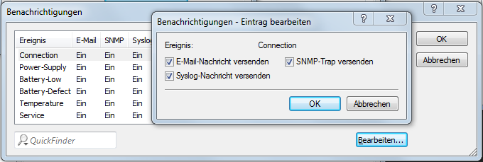 - Tritt dieses Ereignis ein, wird der Administrator via SNMP benachrichtigt. Die SNMP-Meldung wird dabei an den SNMP-Server geschickt, der unter konfiguriert ist.