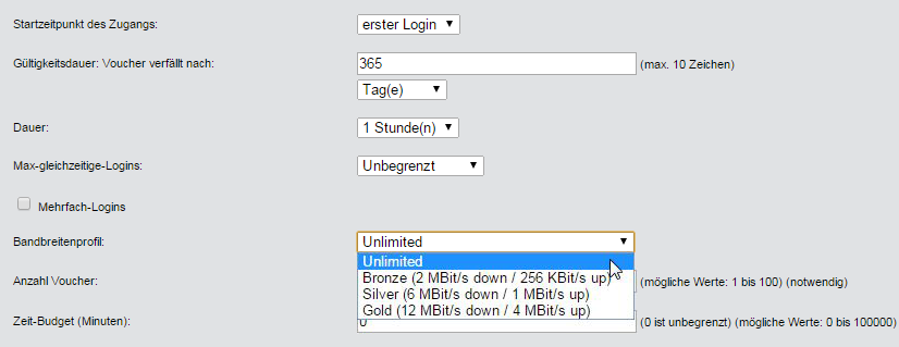 | Erweiterte Funktionen und Einstellungen / Bandbreitenprofile | |