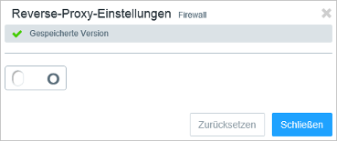 I/0 Ein Schiebeschalter gibt an, ob der Reverse-Proxy derzeit aktiv (I) oder inaktiv (0) ist. Mit einem Klick auf den Schiebeschalter ändern Sie den Status des Reverse-Proxy. Der Reverse-Proxy ist standardmäßig aktiviert.