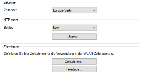 - Der unter Server eingestellte NTP-Server wird verwendet, um das Datum und die Zeit zu stellen.