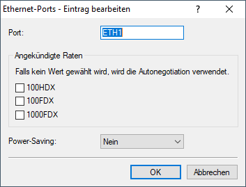 Konfigurieren Sie hier die angekündigten Raten für diesen Ethernet-Port. Falls kein Wert gewählt wird, dann wird die Autonegotiation verwendet.
