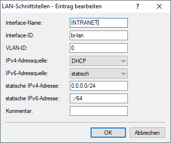 - Vergeben Sie hier einen sprechenden Namen für das Interface. Dieser Name wird verwendet, um die Interface-Konfiguration in weiteren Teilen der Konfiguration zu referenzieren.