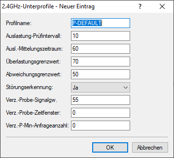 Konfigurieren Sie unter Wireless-LAN > Client-Management > 2,4 GHz-Unterprofile die Einstellungen der 2,4‑GHz-Unterprofile.