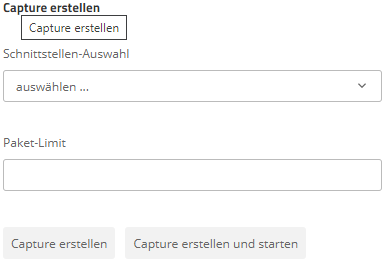 Im Bereich "Capture erstellen" können Sie festlegen, für welche Schnittstelle ein Capture erstellt wird und ob die Capture-Größe über die Anzahl der aufgezeichneten Pakete limitiert werden soll.