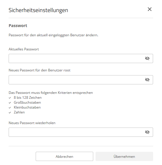 Ändern Sie hier das Passwort für den aktuellen Benutzer (i. d. R. "root").