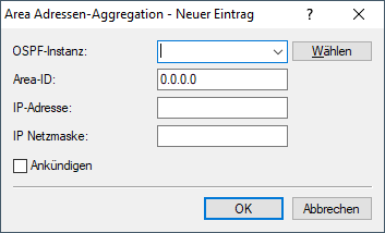 - Identifiziert die Area über eine IPv4-Adresse.Anmerkung: Falls diese Instanz die Backbone Area sein soll, so muss der Wert 0.0.0.0 verwendet werden.