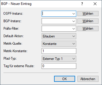 - Die OSPF-Metrik wird gebildet aus der Redistribution-Metrik bzw. Metrik-Konstanten.