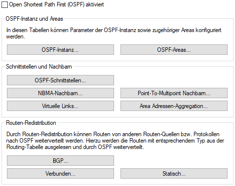 - Um die OSPF-Funktion zu aktivieren, markieren Sie die Option Open Shortest Path First (OSPF) aktiviert.