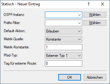 Das Weiterverteilen statischer Routen, d. h. Routen, die manuell vom Benutzer in die Routing-Tabelle eingetragen werden, konfigurieren Sie unter Statisch.