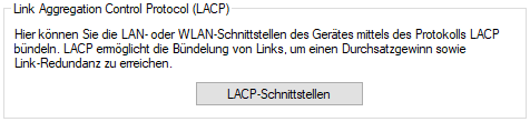 In LANconfig konfigurieren Sie LACP-Schnittstellen unter im Abschnitt Link Aggregation Control Protocol.