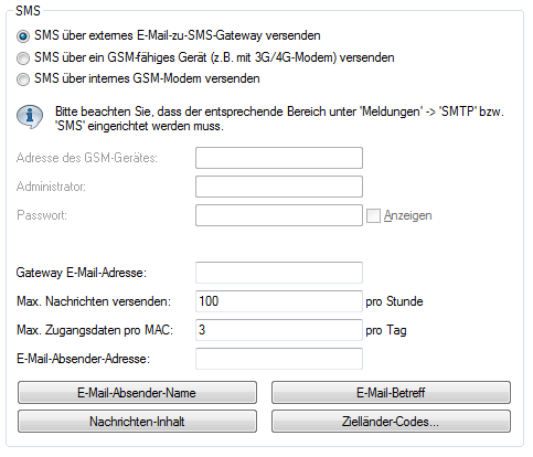 | Selbständige Benutzeranmeldung (Smart Ticket) / SMS-Anmeldung konfigurieren | |