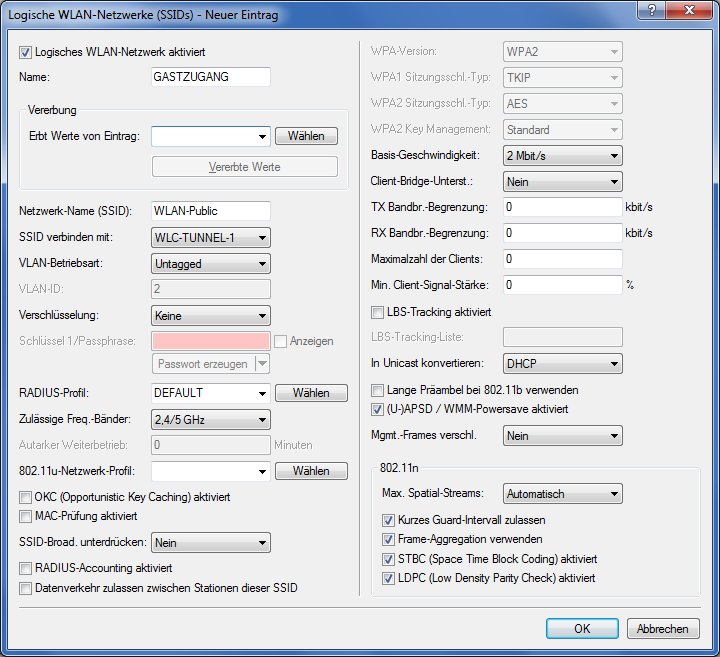 Die Durchleitung der Nutzdaten aus den WLANs über WLC-Tunnel bis zum WLC ermöglicht eine besonders einfache Konfiguration von Public Spots z. B. für Gäste parallel zu einem intern genutzten WLAN.