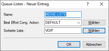 Werden in der definierten Serviceklasse mehr Daten übertragen als Bandbreite vorhanden ist, so werden diese Daten der Klasse Best Effort zugewiesen. Die Definition ist wie folgt: