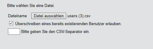 Wählen Sie mit Datei auswählen die zu importierende CSV-Datei