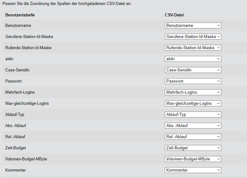 Kontrollieren Sie nun die Zuordnung der unterstützten Spalten zu den in der CSV-Datei