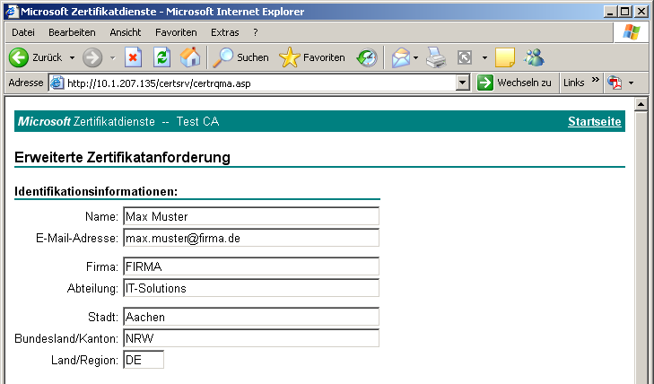 - Rufen Sie in Ihrem Browser die Startseite des Microsoft Zertifikatsdienstes auf.