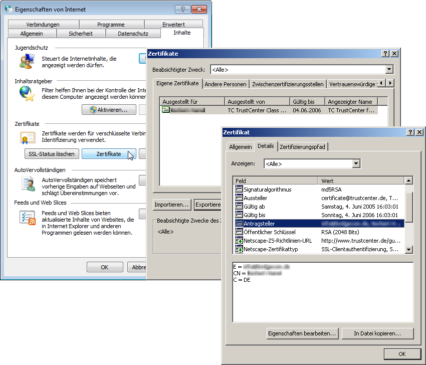 - Die Identitäten werden exakt so eingetragen wie in den Zertifikaten. Die einzelnen Werte z. B. für 'CN', 'O' oder 'OU' können durch Kommata oder Slashes getrennt werden.