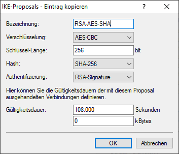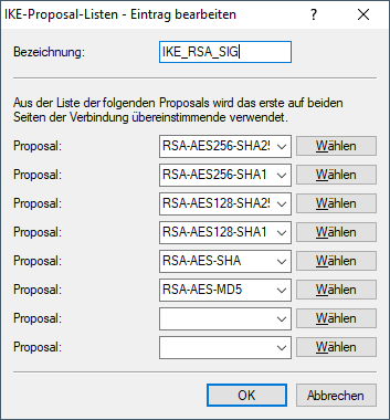 In den Proposal-Listen wird eine neue Liste benötigt mit der exakten Bezeichnung 'IKE_RSA_SIG', in der die beiden neuen