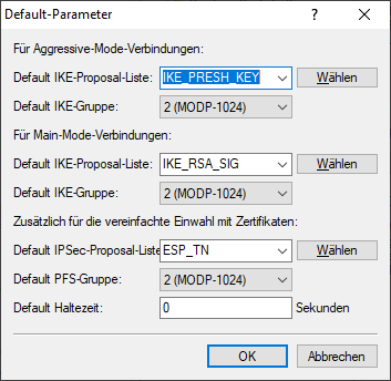 Die Default-IKE-Proposal-Listen und Default-IKE-Gruppen finden Sie in LANconfig unter :